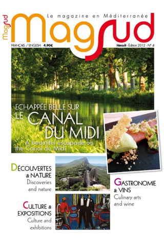 For its fourth edition, the magazine MagSud available in print in newsstands of the department of Herault, the mobile version is also iPad and iPhone as a free download. Always written in French and English, this new edition will introduce you to the department of Herault, through its natural, architectural, restaurants "star" or not, but always creative and delicious. Discover castles and mansions to accommodate a clientele increasingly international. This exceptional tourist run you into the high cantons of Languedoc regional natural, closer to nature, to make you meet these women and men who work the land. The various soils are set forth thanks to the wines increasingly recognized and highly appreciated worldwide. MagSud also evokes the culture with the various exhibitions in major museums of the Hérault Musee Fabre in Montpellier, Paul Valery and M.i.a.m in Sete, Musee Fleury in Lodève, Museum of Contemporary Art or the Museum of Serignan Ephèbe Cape dAgde with its amazing discoveries in the seabed of the Mediterranean. The Canal du Midi, dear to the great genius biterrois Paul Riquet is widely presented in its portion Hérault Marseillan up to the edge of the Thau lagoon. Territory Pic Saint Loup is highlighted through its wines, its way of glass, its legends. The application also includes a map pre-installed which will allow you to locate all these wonderful sites. Magsud 2012, an edition not to be missed.