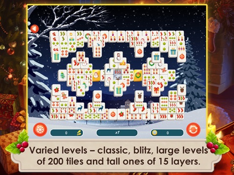 Christmas Eve has come – a time of warming fires, beautifully decorated trees and wonderful gifts! Dive into the holiday atmosphere with the new Mahjong Christmas 2! Enjoy a joyful trip through the most exciting spots in a snow-covered town, long evenings at the holiday table and exciting games by an old hearth! May all your dreams come true on this magical night!