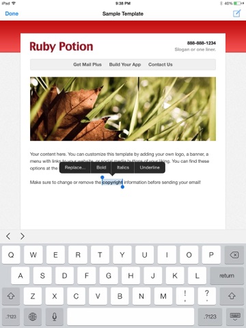 With Mail Plus - Professional Email Stationery Templates, you can send professional looking emails on the go right from your iPhone or iPad. Just choose from a number of beautifully designed email stationery templates that best represents your business or a special occasion, then start writing or speaking (the speak to write feature is built-in to iOS 6 and newer). You can further customize your emails by adding your own logo, a banner, a menu with links to your website, and/or social media buttons of your liking. If you can already send and receive emails with your default Mail app, you can start sending emails right away with Mail Plus. There is absolutely no additional setup up required, and the app is super easy-to-use. Plus, all your sent emails will show up right in your default built-in Mail app, making this a perfect companion for the Mail app.