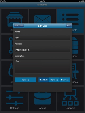 Mailstrap makes administering email even easier. Built around Mailgun’s rich set of APIs, Mailstrap allows you to manage your account directly from your iPhone, iPad, or iPod. Whether you want to just check the status of a mailbox, or create a full-blown mailing lists, Mailstrap is here to make things easier.