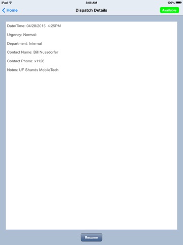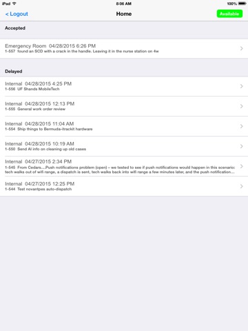 Field management application for patient support services in a healthcare environment. A worker can be notified of and receive dispatched work requests. They can then apply actions on these requests such as Accepted, Started, Delayed, or Finished to update work status.