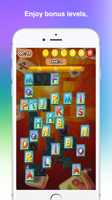 Dare to start a super mahjong journey free, discover new horizons and enjoy playing Alphabet tiles with original images while listening to mysterious music. Become a real mahjong master! Leave more and more levels behind and return to them whenever you want! All you need to do is choose a random mahjong function and pass your favorite levels again and again!