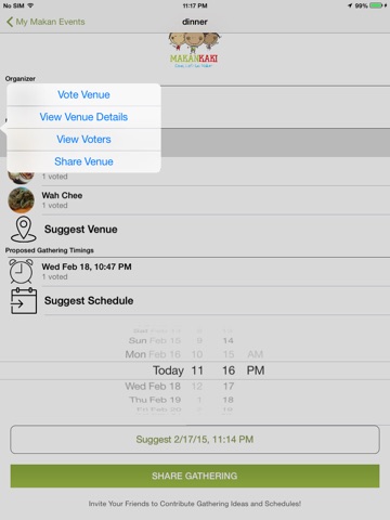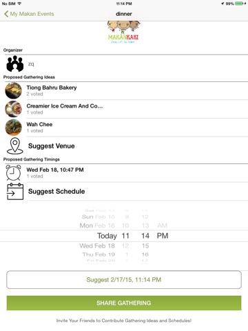 Simply copy and share the gathering URL via your favourite messaging apps, and Makan Kaki will automatically launch the respective gathering when your users click the link.