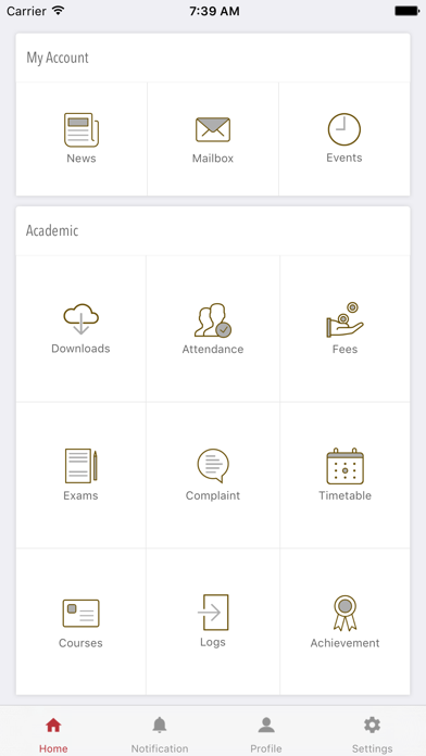 -Complaint:The Complaints module will give an option to the students to see the status of a complaint.