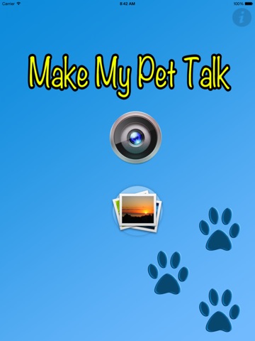 Make your pet talk! Create funny videos of your pet talking like a human. Simply take a picture, adjust the markers and talk into your device.