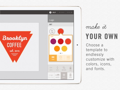 Die App ist nichts für Grafiker. Bietet lediglich eine kleine Auswahl von komischen Logos an, welche leicht modifiziert werden können. Komplett eigene Logos können nicht erstellt werden!