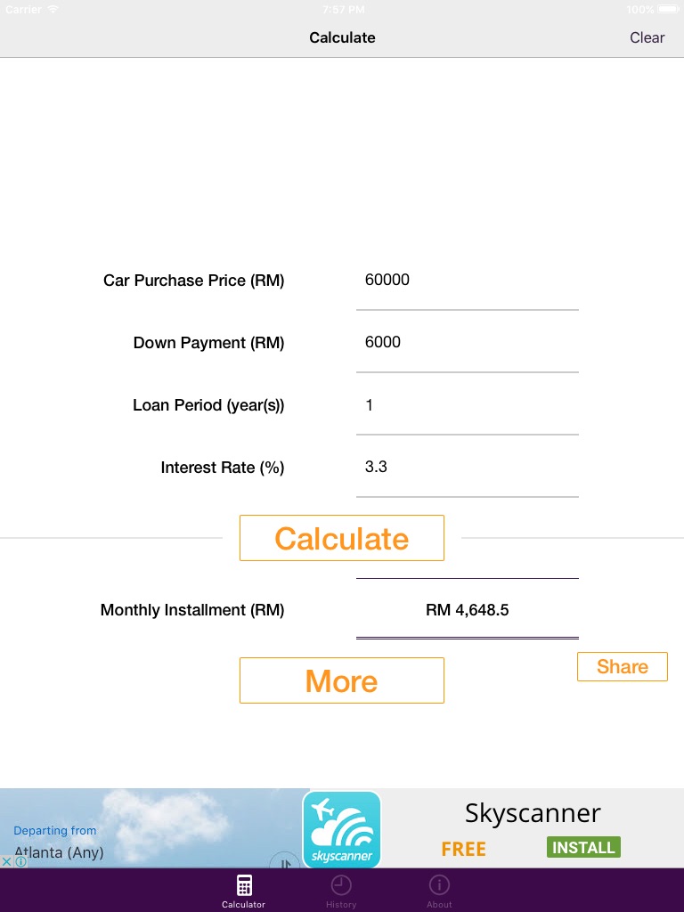 Malaysia Car Loan Calculator is designed for Malaysia car buyers based on the latest rules and regulations in Malaysia. It is the first all-in-one offline car loan calculator for Malaysia, which includes loan repayment calculation, amortization schedule by month, and history.