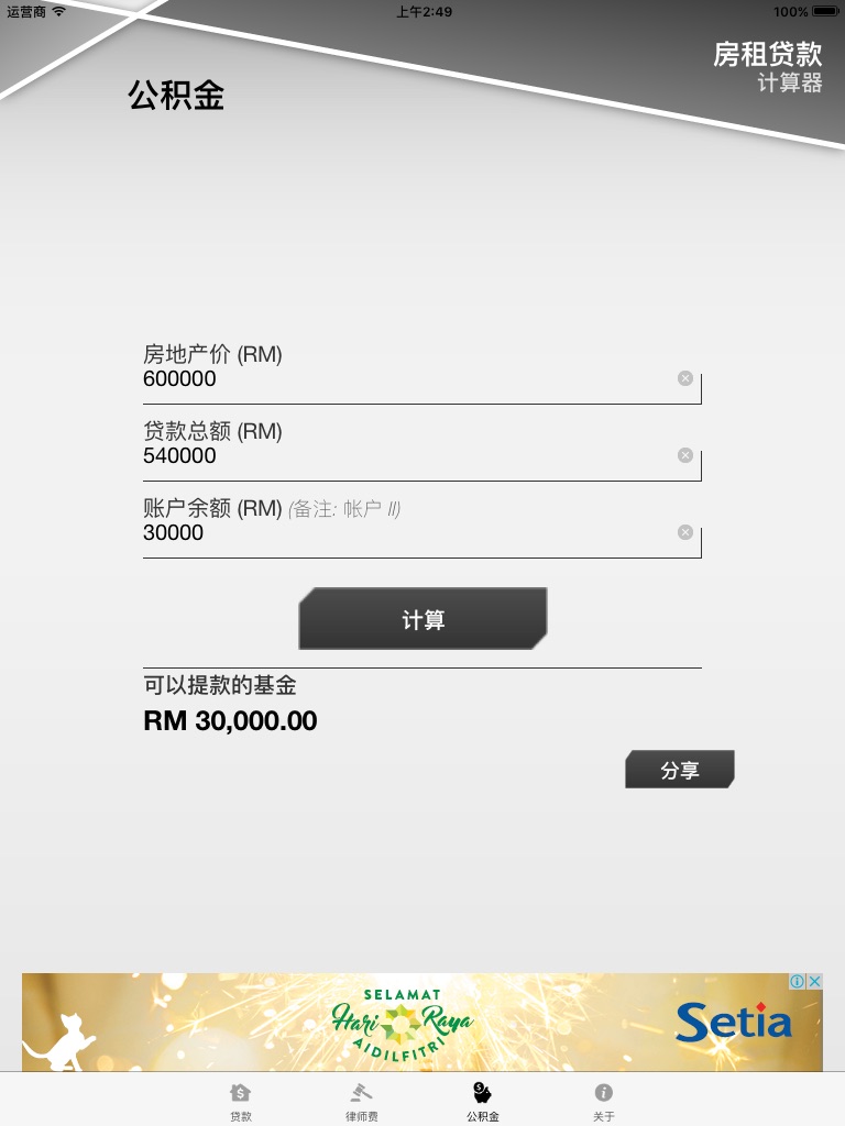 Malaysia Home Loan Calculator is designed for Malaysia home buyers or foreign property investors based on the latest rules and regulations in Malaysia. It is the first all-in-one offline home loan calculator for Malaysia, which includes loan repayment calculation, amortization schedule by year and month, legal fee calculation, Sales and Purchase agreement and loan agreement stamp duty calculation and EPF withdrawal calculator. It also provides the latest property news for reference.