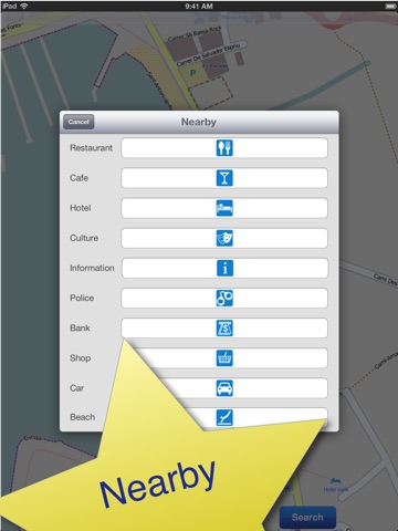 - Find street names, points of interest, beaches, hotels, museums, restaurants, shops, police, banks and petrol stations very fast