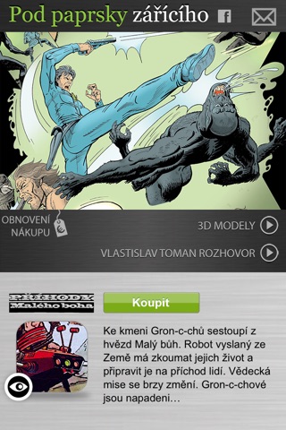 Doufáme, že z aplikace budete mít stejnou radost jako my, a že se budete dobře bavit. Vzhledem k nákladům na vývoj a nákup práv na uveřejnění komiksů jsme cenu jednoho vydání stanovili na 1,79 eur, cenu celé trilogie na 3,59 eur a všech šest dílů si můžete koupit za 6,99 Eur. Všichni, kdo už si komiks dříve zakoupili na iPadu, si ho mohou zdarma stáhnout také do iPhone. Stačí klepnout na ikonu Obnovit nákupy a přihlásit se pod stejným iTunes účtem.