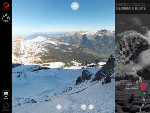 With a head-mounted device (e.g., Google Cardboard, Zeiss VR One, Homido or others) the virtual reality of the images allows you to experience the ascent of the famous and bold Eiger North Face or the Matterhorn in the thick of it.