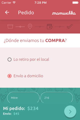 Hay dos modalidades para la compra: Delivery a domicilio o Retiro por el local. En ambos casos, la aplicación te permitirá que selecciones cuando querés recibir tu pedido.