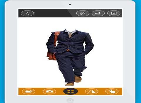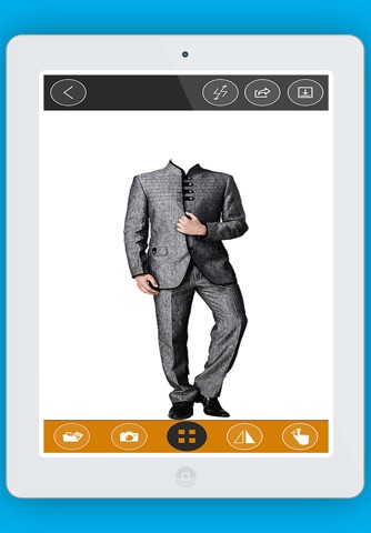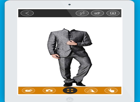 Edit your selected photo with two fingers to move, rotate and scale it and fit to suit position and you can also add text to your picture,rotate text and you can place it anywhere on your pic. You have a wide variety of designer suits which makes you look more stylish.