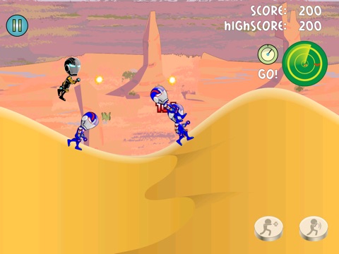 You cannot fly as your power supply is dangerously low, though you are invincible in your super powerful armor. Instead, you can run as fast by learning jumping skill! Use the gravity of the hills and make your jump higher and higher. Finish last and you lose the game, finishing first gives the golden badge. Try to collect all the golden badges in various levels.