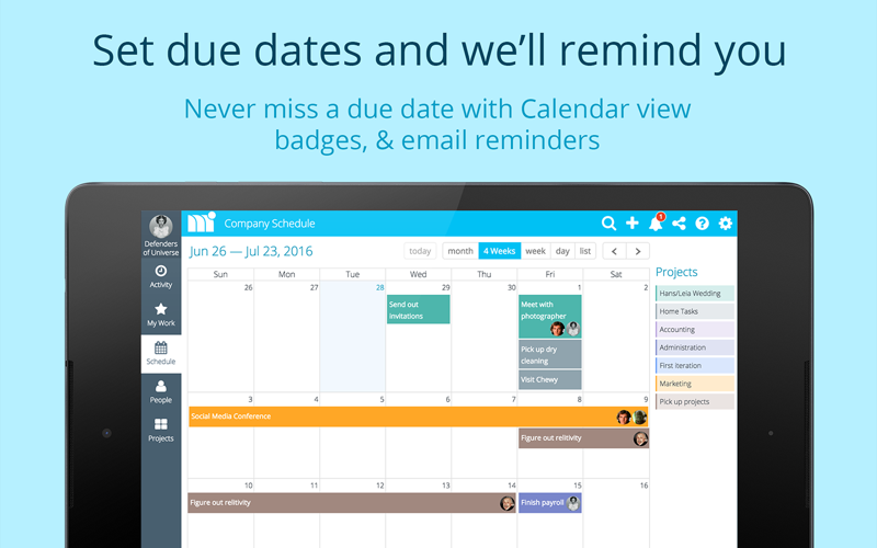 • Calendar View - Set due dates for your tasks and view them in a calendar format.