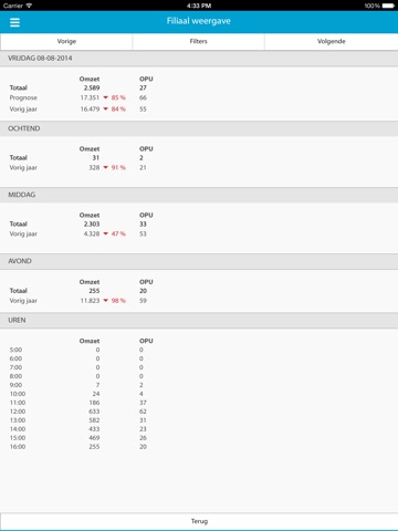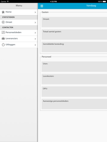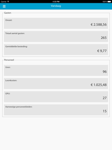 * Voor realtime omzet, OPU, totaal gastenaantal is een live koppeling met uw kassa vereist. Vraag naar de mogelijkheden en aantrekkelijke aanbieding. Verder vindt u in de manager App: contactgegevens van medewerkers en leveranciers.
