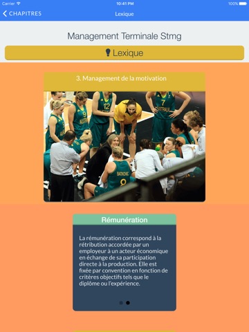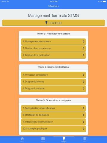 Votre application comporte trois parties : le cours, le lexique et les quiz