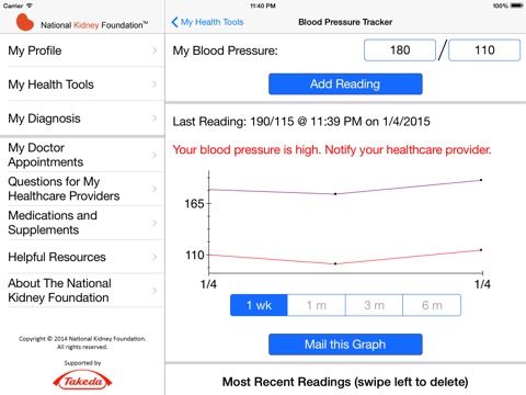 Includes easy-to-use tools to track your weight, blood pressure, eGFR,