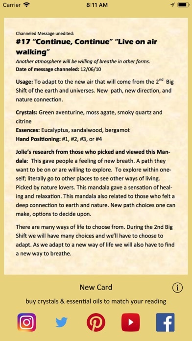 The MANDALA LIFE READING is used by everyone. Healers & therapist around the globe use them with their practices! The mandala paintings “Speak “ to you. When You choose or slide to pick the card you want, it will auto-flip, then you receive your “messages.” These cards can also be used for numerology & assist in metaphysical healing modalities. The Mandalas are scared geometry channeled by Jolie DeMarco from spirits of the light. Hand Mudras, Crystals and essential oils are additionally given as insight for you to utilize.