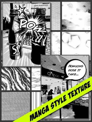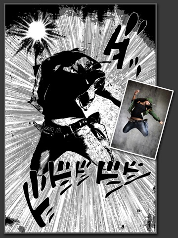 Realistic manga image with a wide selection of filters, comic fonts, captions, a library of manga graphics and lots of manga tones (manga style texture).