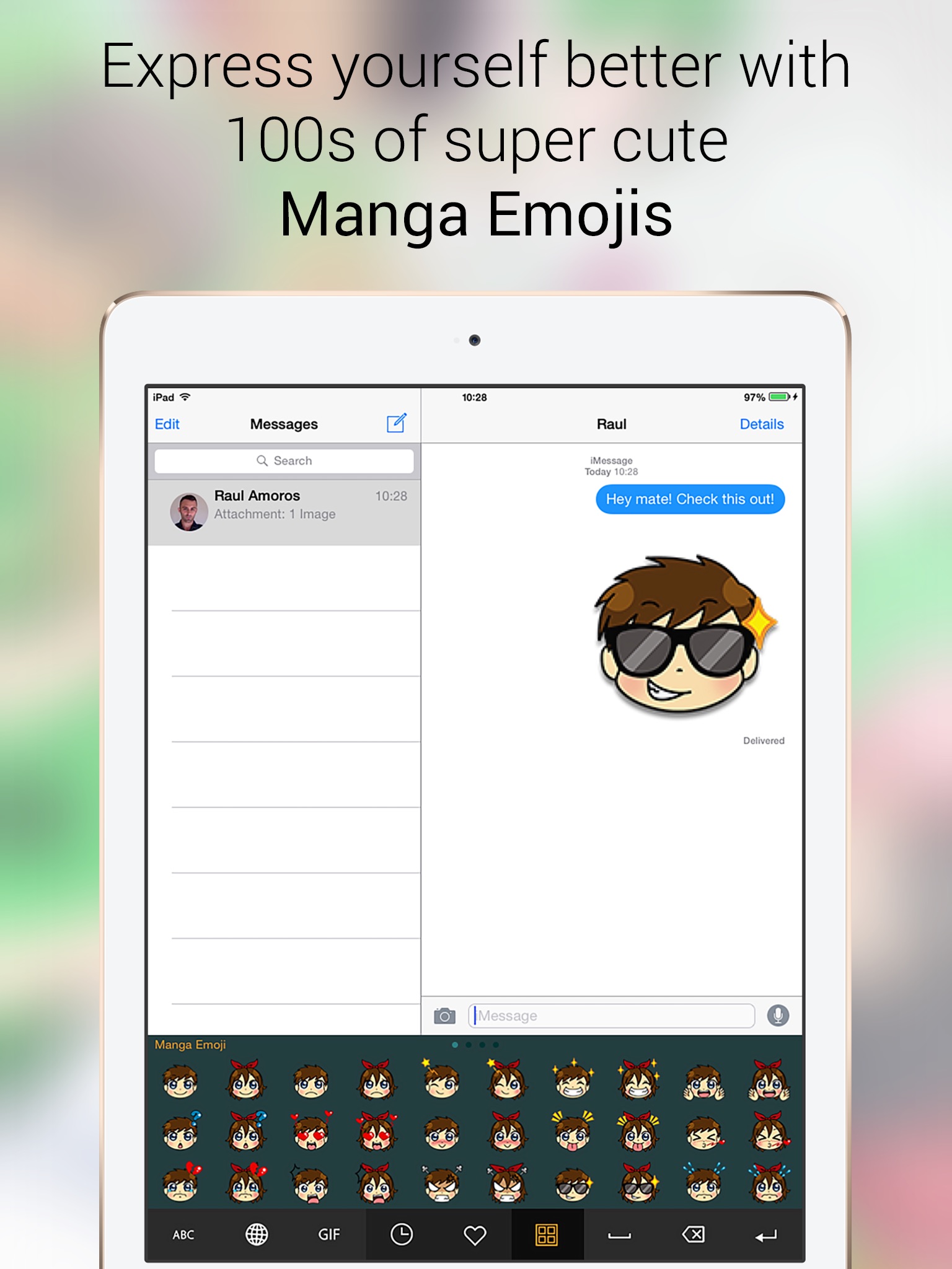 We present to you a fully loaded, Manga themed keyboard, optimized for iOS 8 and above, that can be used in all your apps. Say goodbye to boring grey keyboards, say hello to MangaKey.