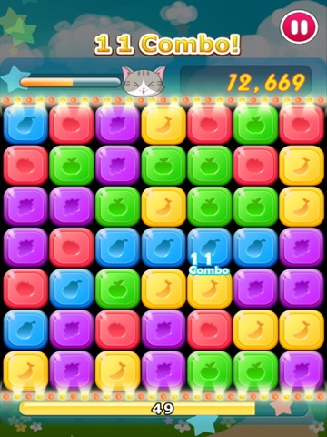 Blok Buah yang dapat kamu gerakan untuk dicocokan dengan yang lain hingga meledak sebanyak mungkin dalam waktu tertentu.