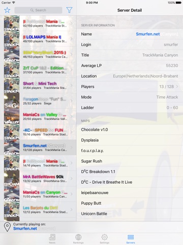 Check your current rankings, servers with players and the most recent news from the game platform ManiaPlanet on your mobile device. ManiaPlanet is a gaming platform with games like TrackMania and ShootMania.