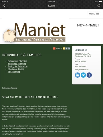 Maniet Financial Services Network provides our clients with access to a WIDE RANGE of high quality investments. Investments for all investor types ranging from the most conservative to the most aggressive. Many of these investments have low to no-correlation with the broad stock and bond markets.