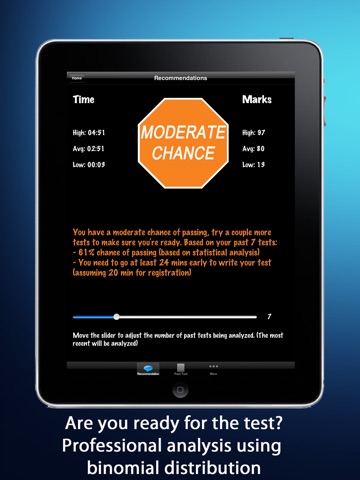 - Analyze your chances of passing the actual knowledge test based on your past performance