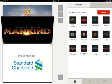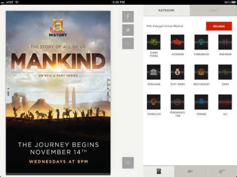 Aplikasi Mankind dari HISTORY menawarkan gambaran unik terhadap tamadun manusia dengan koleksi fakta-fakta eksklusif yang mengejutkan dan mengagumkan. Diinspirasikan oleh siri MANKIND: The Story of All of Us yang menggemparkan, aplikasi ini menyarikan fakta-fakta pendek, menyeronokkan dan terpilih oleh kumpulan HISTORY. Pengguna juga boleh tonton video, gambar dan infografik MANKIND: The Story of All of Us yang eksklusif. Pengantaramukaan “flip clock” yang mudah digunakan memberi pengguna peluang untuk membaca fakta-fakta mengikut tema dan kepopularan atau baca fakta-fakta secara rawak. Tak kira jika anda nak menarik perhatian rakan-rakan anda, nak ketahui sesuatu baru atau hanya nak menghiburkan diri anda, aplikasi ini adalah cara terbaru untuk ketahui fakta-fakta yang mengagumkan tentang sejarah manusia.