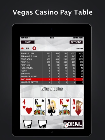 If you are a true lover of video poker, it doesnt get much better than this! Classic Jacks or Better style poker games with an authentic Vegas Casino pay table.
