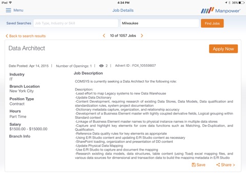 - Easily share jobs with friends through email, Facebook and LinkedIn