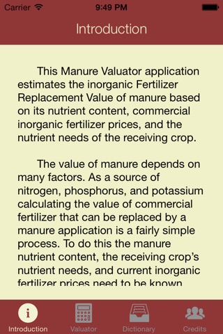 This application allows users to valuate the cost of fertilizers and determine how much fertilizer to apply on their fields.