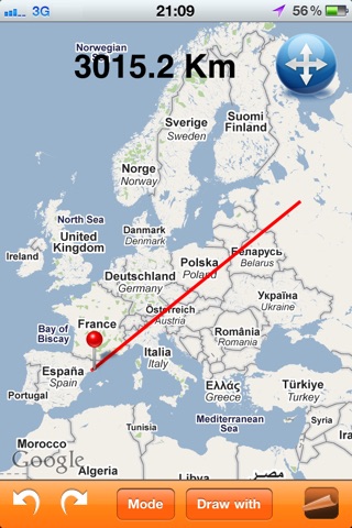 "Map Distance" allows users to know the distance of any path/route drawn on the map. Can be used in any zoom level, at any orientation (LANDSCAPE and PORTRAIT), being useful to calculate distances between countries, cities, streets as well as length of trails or routes. The feature of marking your current location allows also knowing any distance between you and other places.