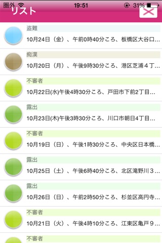 県警本部や市役所などから配信されている安全情報あるいは犯罪に関する情報を収集し、整理し、表示しています。 犯罪が起きた場所やその内容を簡単に入手できると、事前に心構えもできます。 これらの情報を外出先でも閲覧できるので便利です。