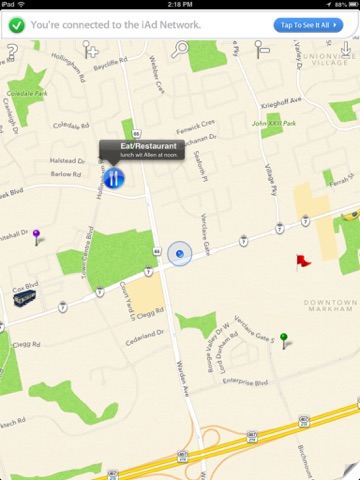 Map Markers Supreme is an app that allows you to drop pins/markers at your desired locations on the map. The markers are graphic icons representing a list of tasks/places that you need to do/visit. It will provide you with an over all view of where various places are located relative to one another. With this visual, you can determine the easiest route/order to take in order to minimize your time/effort.