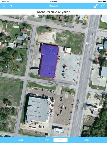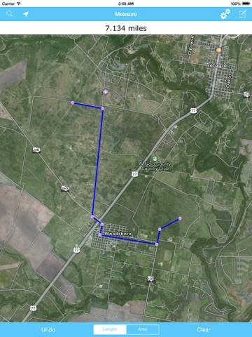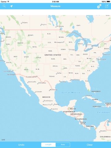 Measure areas and lengths/distances in any desired units that can be preset in map settings.