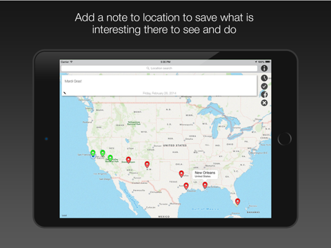 * Whenever you find a travel place to visit or get a recommendation, you can store certain location on a map.