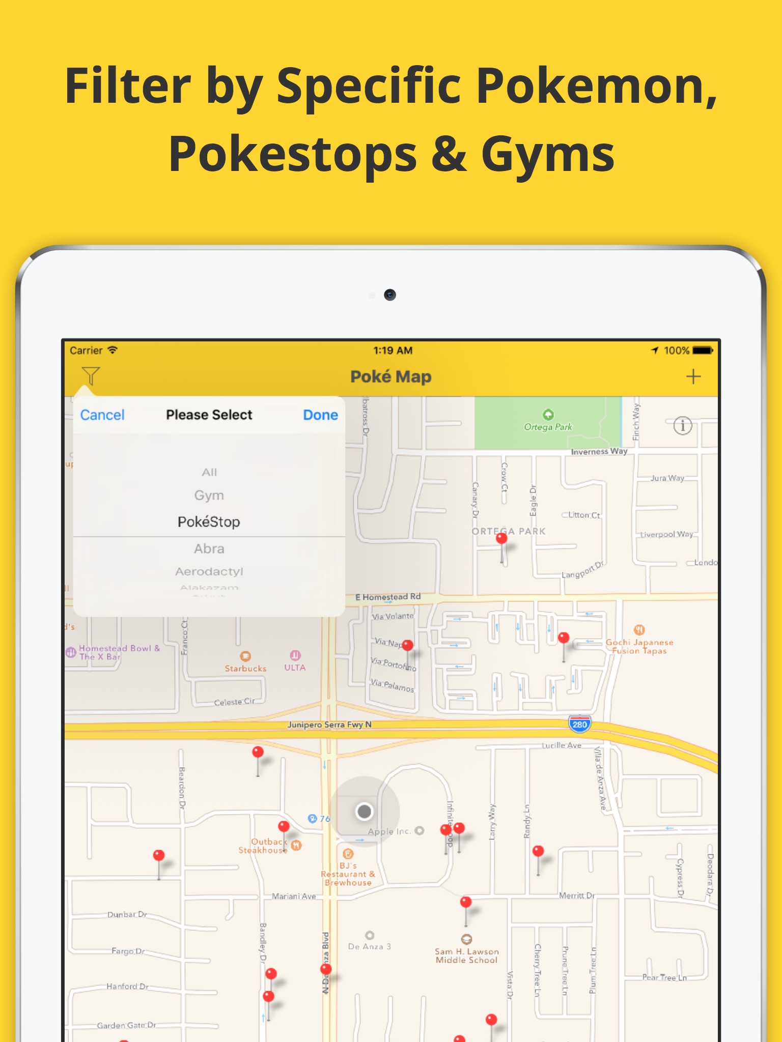 - Filter by specific Pokemon, Pokestops & Gyms.