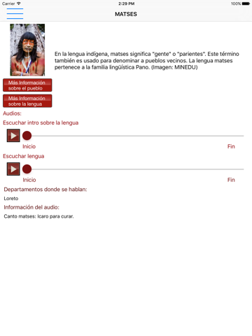 El Mapa Sonoro de las Lenguas Indígenas del Perú es una plataforma virtual desarrollada por el Ministerio de Cultura, en la que puedes escuchar y conocer más sobre las lenguas indígenas peruanas y sobre los pueblos que las hablan. Aquí podrás también aprender frases básicas, ver videos y escuchar canciones en cada lengua.
