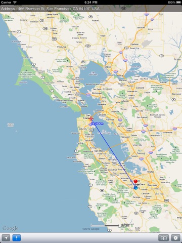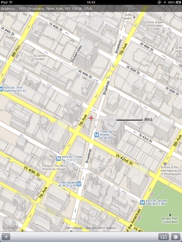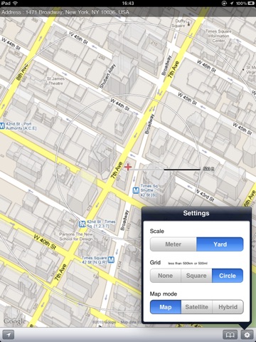 This map application shows a distance from the center of the map.