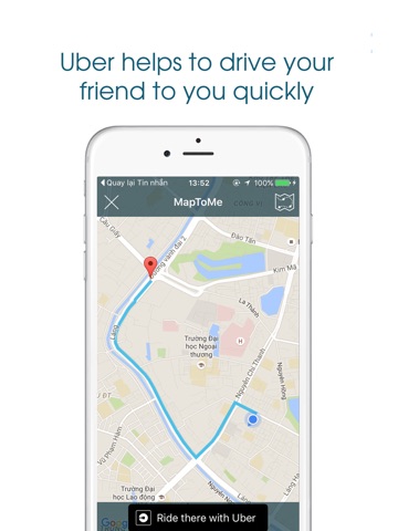 * Route: your friend can view the route from they to you instantly. They can ride an Uber taxi or bike to come to your location quickly.