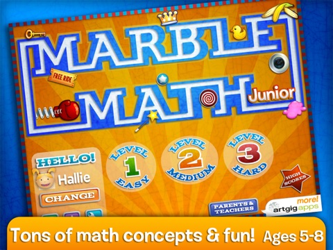 KinderTowns Review: Marble Math Junior is an excellent example of how to merge quality game design with significant educational value. This app moves kids through the sequence of understanding the question, tapping into knowledge to form an answer and creating a strategy for navigating the gameplay maze. Getting answers wrong is not an issue here as its highly motivating to learn through trial and error too. Take time to read the information pages to learn about all the features and customize the problems and levels. One of the most engaging, educational math apps we have played to date.