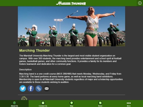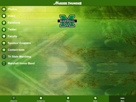 About Us, Contact Us, Map, News, Photos, Video, Facebook, Twitter, Faculty, Sponsor Coupons, Contact form, Tri State Marching, Marshall Honor Band