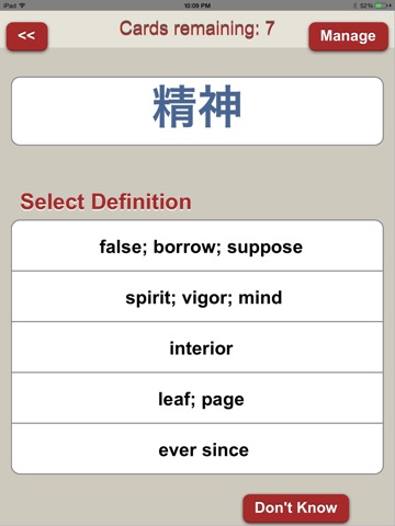 * Automated flashcards: Every unfamiliar character you look up is automatically added to your personal flashcards list so you can drill yourself on the new vocabulary youve learned.