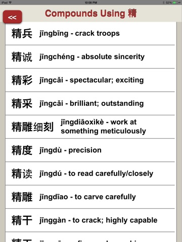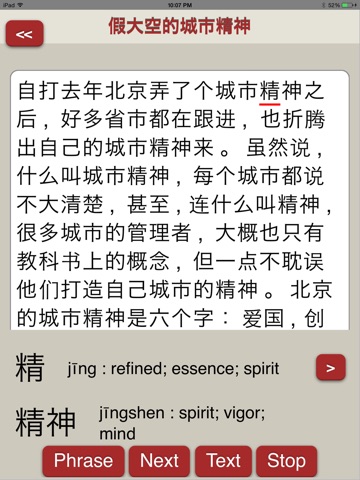 * Phrase-by-phrase audio playback in a natural Chinese voice: Listen to a single phrase as many times as necessary to master its meaning and inflection patterns.