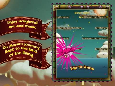 Enjoy the simple game play mechanics and festive art, music and FX. The theme with its circus like feel and story were inspired by Guillermo del Toro and Jorge R. Gutierrezs film "The Book of Life". Like in "The Book of Life" the game takes place during the Mexican festival La Dia de los Muertos ( The Day of the Dead). Can you help Maria Garcia escape back to the land of the living?