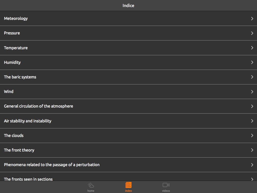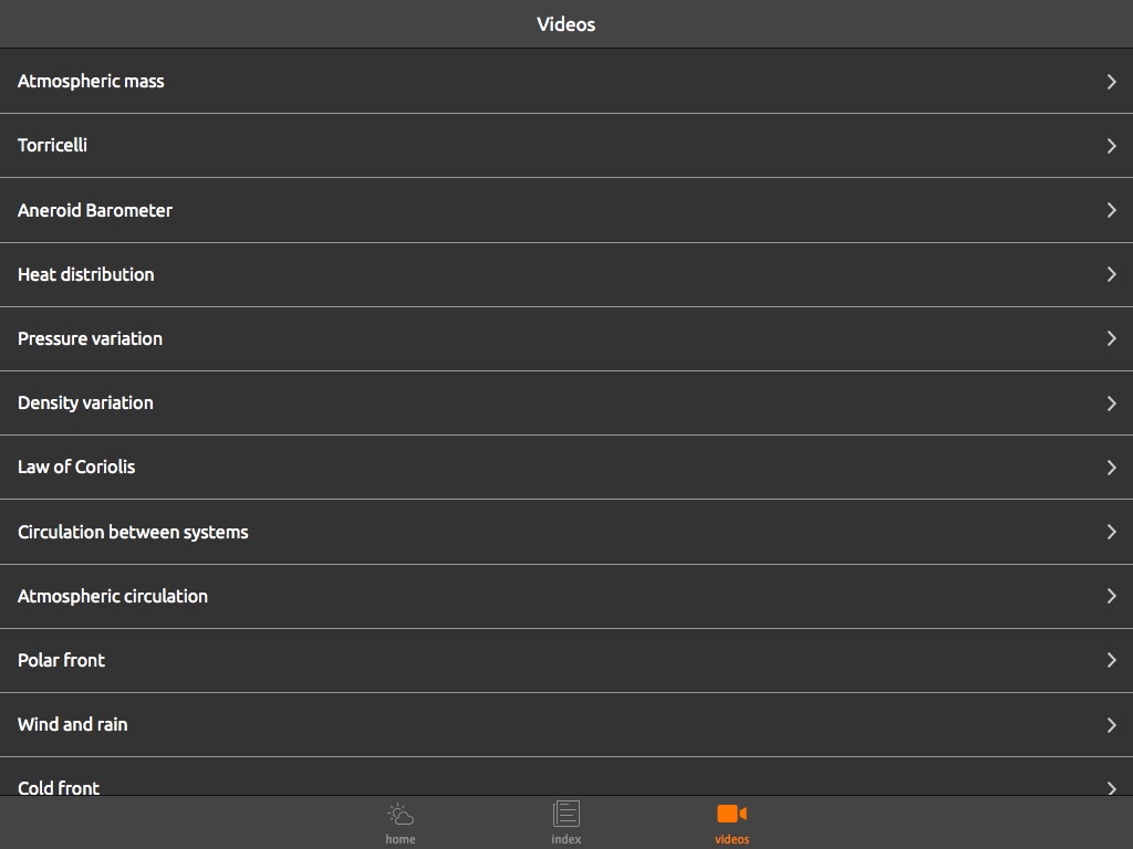 Pressure, temperature, humidity, air circulation, depression’s origin, fronts, winds, all these topics are treated in this application by means of an easy to read text, cleared by many illustrations and beautiful animations with clear spoken descriptions easy to understand.