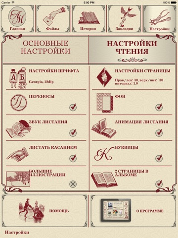 * Полнофункциональный файловый менеджер, Поиск, История чтения и Закладки обеспечивают легкую навигацию между книгами.