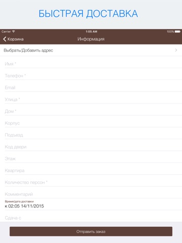 - Не надо вводить свой адрес снова и снова, мы запомним его при первом заказе!